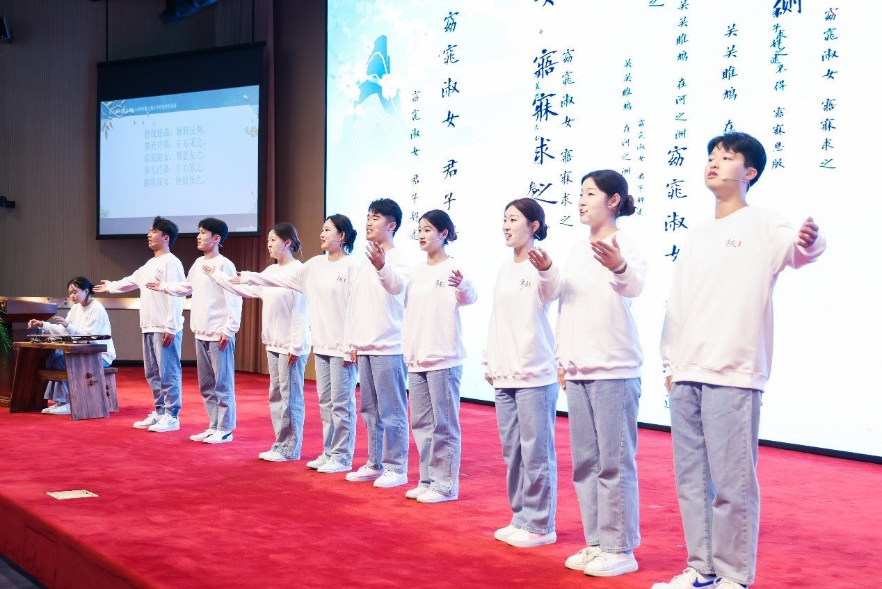 曲阜师大音乐学院讯 近日,由中华诗词学会、中国韵文学会、上海市艺术教育委员会联合指导,上海大学主办,教育部中华优秀传统文化传承基地(上海大学中华古诗文吟诵和创作基地)承办的第七届中华诗词吟诵大会成功落下帷幕,由我校音乐学院“采薇诗乐--古谱诗词演唱工作坊”的10位同学,凭借对《诗经·周南·关雎》内涵的深刻把握将古琴与吟诵相结合,动情的吟咏中传达出日常情感生活的谐美和生机,将古典音韵娓娓道来,让人仿佛穿越时光回到了古代的诗意世界。
