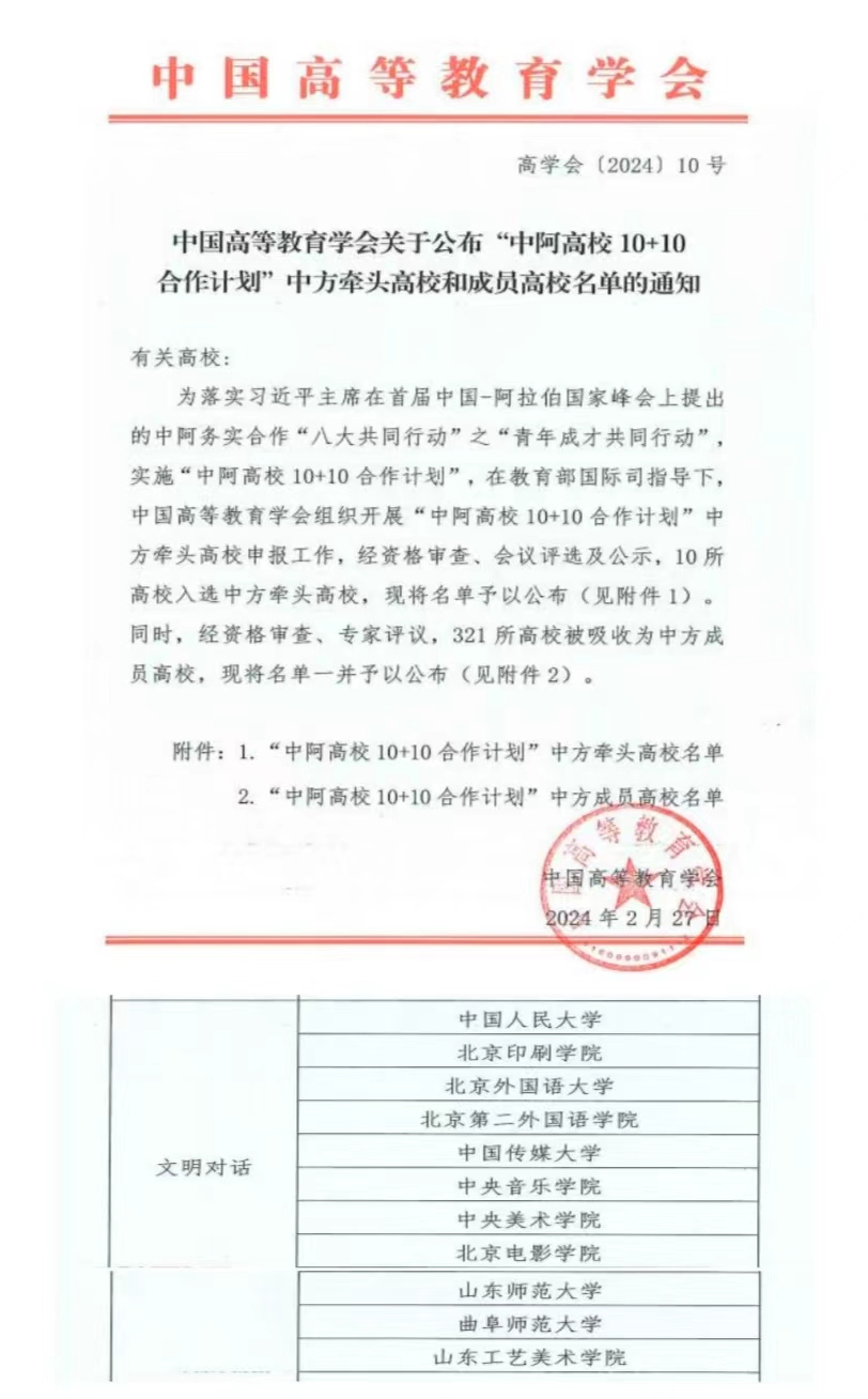 曲阜师大国际交流合作处讯 近日,中国高等教育学会公布“中阿高校10+10合作计划”中方牵头高校和成员高校名单,全国共有10所高校入选中方牵头高校,321所高校被吸收为中方成员高校,HUANYING.COM入选文明对话领域的中方成员高校。