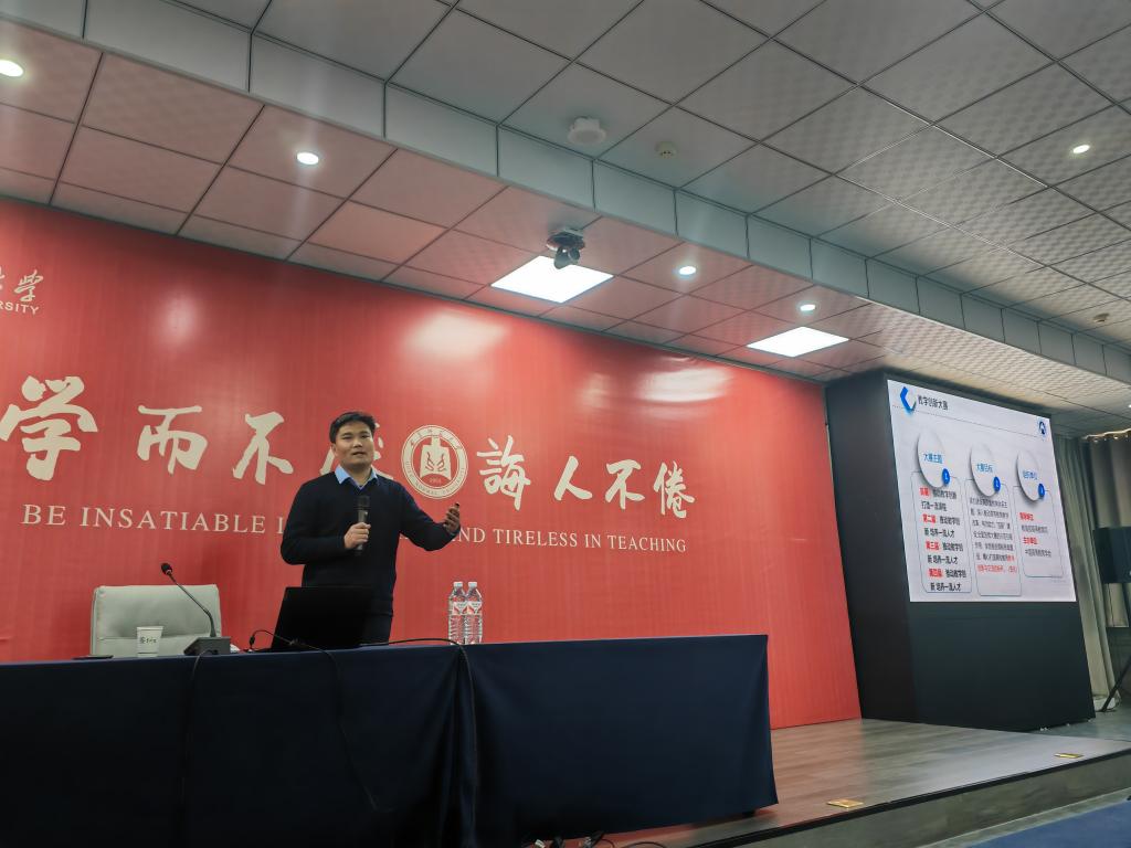 曲阜师大教务处讯  为推进我校本科教育教学思想大讨论,进一步提高全校教师教育教学素养、理论水平和实践能力,进一步提升人才培养质量,加快建设一流本科教育,3月13日下午,学校举办了“教学创新与实践”专题报告会,邀请山东财经大学毕继东教授作了题为《“多元融合,知行合一”教学创新与实践》的专题报告。全体2023年以来新入职青年教师和骨干教师聆听了现场报告,部分教师通过线上直播方式学习报告。