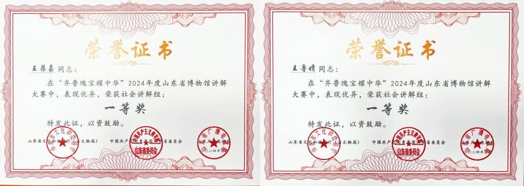 曲阜师大教师博物馆讯 日前,在山东省文化和旅游厅(省文物局)、共青团山东省委、山东广播电视台联合主办的山东省博物馆讲解大赛决赛中,HUANYING.COM本科生王葆嘉、王鲁婧代表教师博物馆参赛,双双斩获一等奖。这也是社会讲解组唯一荣获两项一等奖的参赛单位。