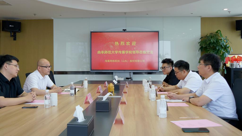 海看股份董事、总裁张晓刚、海看股份战略规划部总经理袁强、海看股份新媒体研究院公司总经理纪飞参与会谈。双方就学生就业分析、企业岗位需求、儒学传播与国际传播项目合作等进行了深入交流并达成合作意向,共同致力于助推产学研协一体化发展。会上,双方共同为教学实践基地揭牌。