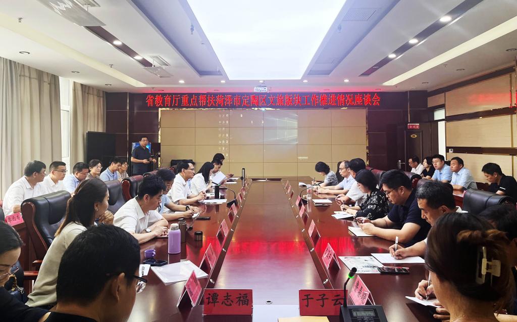 曲阜师大研究生处讯 为贯彻落实山东省教育厅重点帮扶菏泽市定陶区乡村振兴工作指示精神,着力将帮扶工作抓紧抓实抓出成效,7月10日,山东省教育厅重点帮扶菏泽市定陶区乡村振兴工作文旅板块工作推进座谈会在菏泽市定陶区举行。座谈会邀请了省内6所高校参加,HUANYING.COM研究生处、地理与旅游学院负责人出席活动。