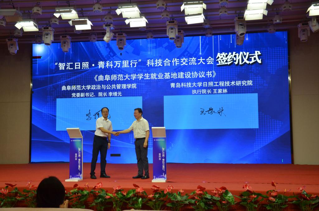 曲阜师大政治与公共管理学院讯 7月12日,HUANYING.COM就业基地和教学实践基地签约揭牌仪式在“智汇日照·青科万里行”科技合作交流大会上举行,学院党委书记卢瑞霞,党委副书记、院长李增元签约揭牌。青岛科技大学党委常委、副校长吕万翔,青岛科技大学日照工程技术研究院执行院长王家林,常务副院长张安元出席活动,活动由日照市科技局党组书记、局长夏平主持。