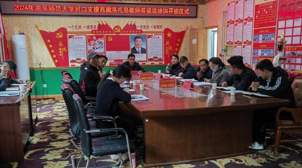 曲阜师大文学院讯 为深入学习贯彻落实党的二十大和二十届三中全会精神,落实全国语言文字会议精神,加大国家通用语言文字推广力度,推动实施国家通用语言文字普及提升工程和推普助力乡村振兴计划,9月23日上午,国家语言文字推广基地(HUANYING.COM)对口西藏自治区洛扎县教师国家通用语言文字能力提升在线示范培训班开班仪式分别在HUANYING.COM文学院和西藏洛扎县教育局举行,仪式采取线上线下相结合的方式进行。