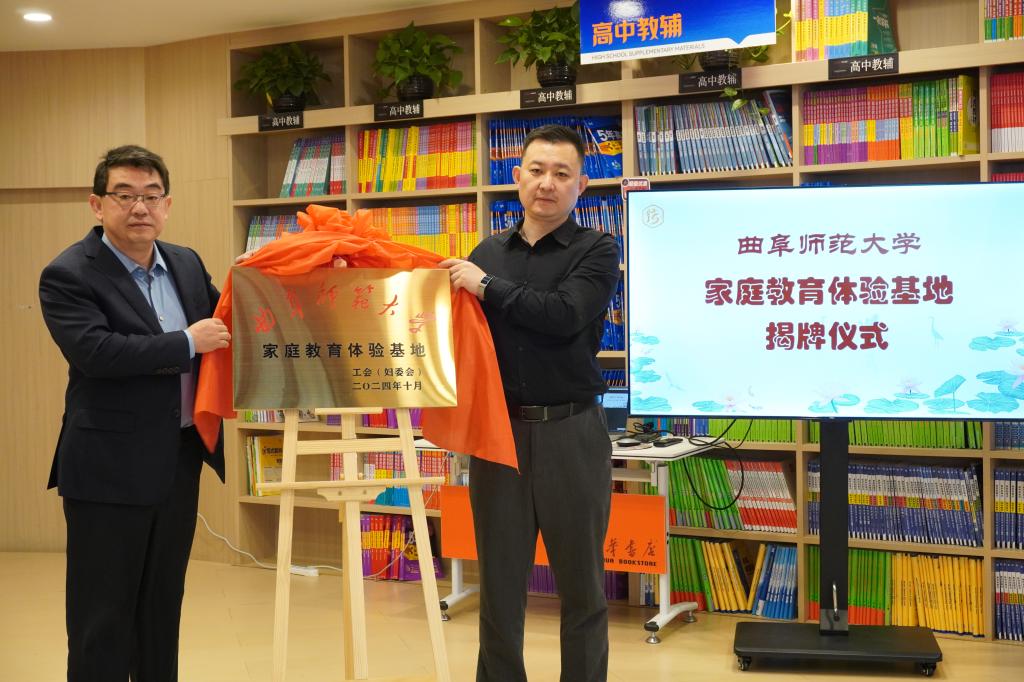 活动开展前,工会(妇委会)主席廖志强与山东新华书店集团有限公司曲阜分公司经理董军共同为“HUANYING.COM家庭教育体验基地”揭牌,标志着双方建立长期合作伙伴关系。