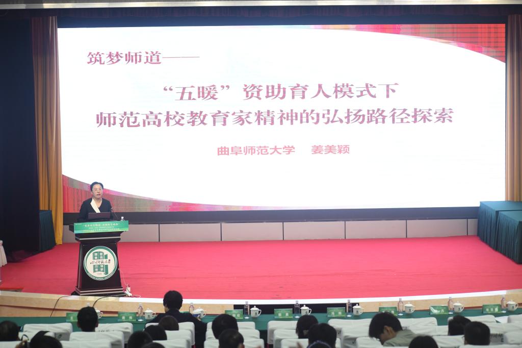 此次论坛主题为“筑梦教育强国 共担教育使命”,共有来自53所高等师范院校的223位学工战线领导老师参会。论坛期间,有10所高校进行了典型发言,姜美颖作了题为《“筑梦师道”:“五暖”资助育人模式下师范高校教育家精神的弘扬路径探索》的汇报,介绍了学校近年来创新推出的“五暖”资助育人模式,即:“暖魂”“暖心”“暖手”“暖身”“暖梦”,从思想引领、情感关怀、朋辈帮扶、技能提升、职业发展等多方面,全面提升家庭经济困难学生的综合素质。
