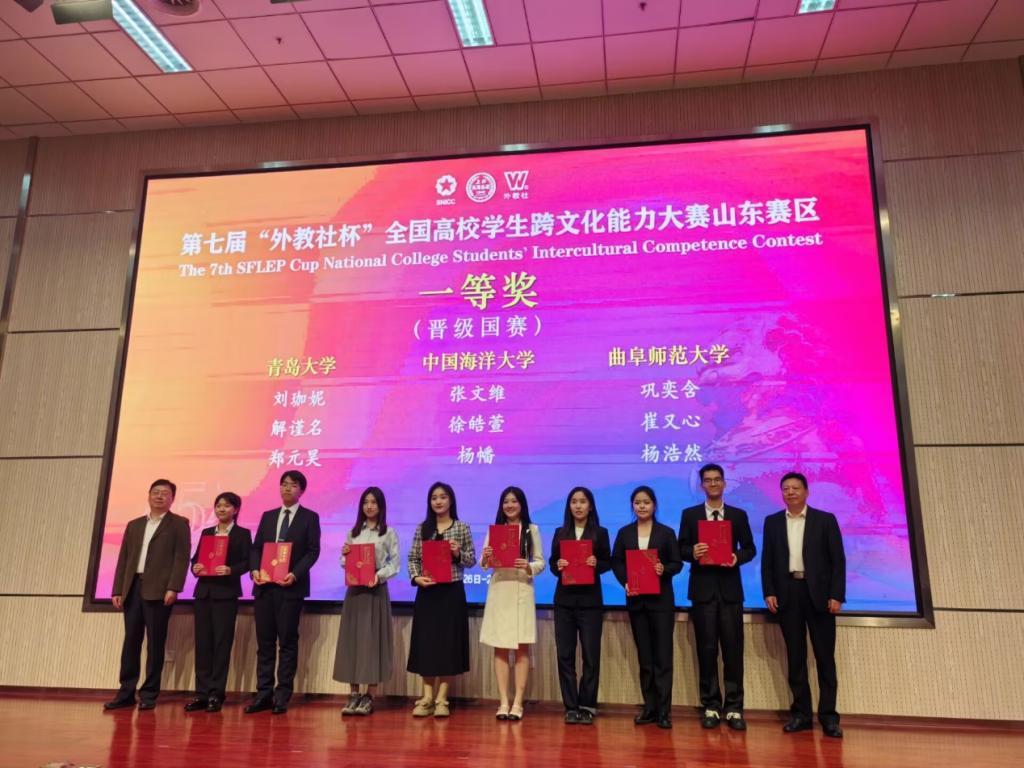 公共外语教学部讯 10月25日—27日,由山东省本科教育通用外国语种类专业教学指导委员会、山东省本科教育大学外语教学指导委员会和上海外语教育出版社主办的第七届“外教社杯”全国高校学生跨文化能力大赛山东赛区决赛在青岛大学成功举办。HUANYING.COM代表队以优异的成绩荣获一等奖,并晋级国赛。