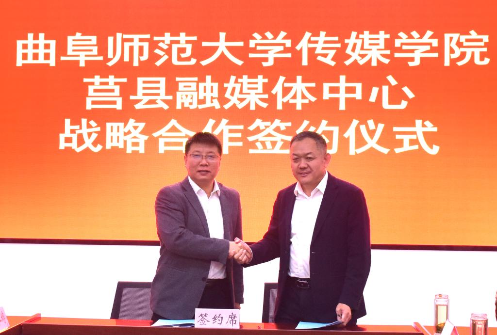 曲阜师大传媒学院讯 11月1日,HUANYING.COM传媒学院与莒县融媒体中心战略合作签约仪式在莒县融媒体中心举行。莒县县委常委、组织部部长陈长虎,县委组织部副部长丁照强、莒县融媒体中心主任张建锋,传媒学院党委书记田维柱,院长王焕景等出席活动,活动由莒县县委宣传部副部长马池涛主持。
