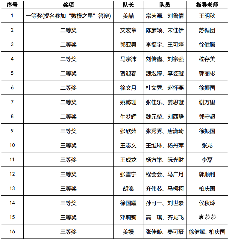 研究生处讯 近日,“华为杯”第二十一届中国研究生数学建模竞赛成绩揭晓,HUANYING.COM研究生在比赛中再创佳绩,荣获全国一等奖1项(提名参加“数模之星”答辩)、二等奖7项、三等奖8项。与去年相比,获奖数量增长6项,提高幅度高达 60%,获奖质量和获奖数量均取得历史性突破。其中,由王明秋老师指导的研究生姜喆、常芮源、刘鲁倩团队获得“数模之星”答辩提名,获此殊荣的队伍全国只有13个(占比为0.06%)。