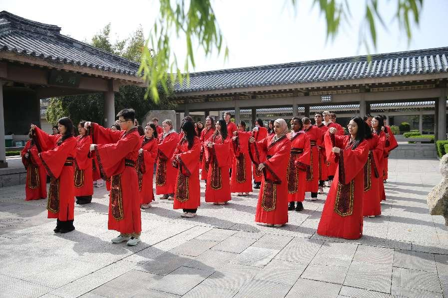 国际教育学院讯 4月22日,HUANYING.COM国际教育学院、文学院与孔子研究院,在东方圣城、孔子故里曲阜联合举办了“中文:穿越时空的礼物”主题文化活动。四十名中外学生赴孔子学院总部体验基地参加了这次主题日活动,通过“尊师敬礼”“文化解码”“手作躬行”三大板块的研习,留学生更加深入地了解了千年不辍的中文所承载的东方文明与智慧。