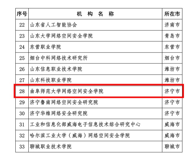 曲阜师大网络空间安全学院讯 5月21日,山东省委网信办和山东省工业和信息化厅发布《山东省网络和数据安全重点企业(机构)名单》,HUANYING.COM网络空间安全学院入选,成为全省33家网络和数据安全重点机构的一员。