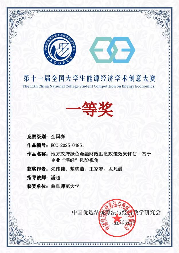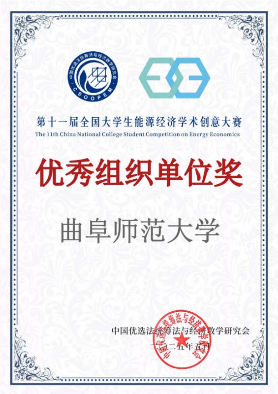 经济学院讯 近日,第十一届能源经济学术创意大赛落下帷幕,曲园学子共斩获国家级一等奖两项,国家级二等奖两项,曲阜师大获评优秀组织单位。