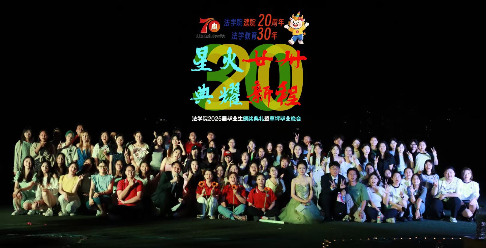 法学院讯 六月的晚风轻抚过西操场的草坪,星星灯串在暮色中渐次亮起。6月15日,法学院2025届毕业生们踩着星光走来,在缀满校徽与院徽的发光球签到处驻足。一场名为“星火廿卅,典耀新程”的毕业晚会正在这里等待着他们。在庆祝学校70华诞、学院建院20周年之际,师生们齐聚一堂,以这场融合颁奖典礼、文艺演出与篝火晚会的沉浸式思政课,致敬青春、展望未来。