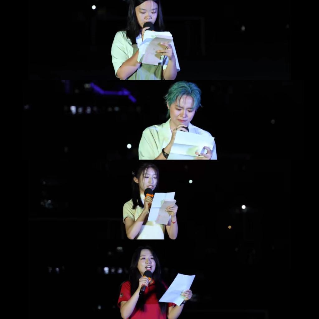 晚会特别设置了《成长笺语》环节,秘密联络了毕业生的教师父亲、律师母亲、任课老师和师弟师妹这些法学院家人为毕业生写下亲笔信。当学子现场拆读这些饱含深情的文字时,全场观众为之动容,瞬间哽咽泪目。有同学激动地说:“他爸爸写的正是我妈妈一直叮嘱我的,‘要在能读书的时候好好读书’,让我太有共鸣了,当场泪洒星空。”