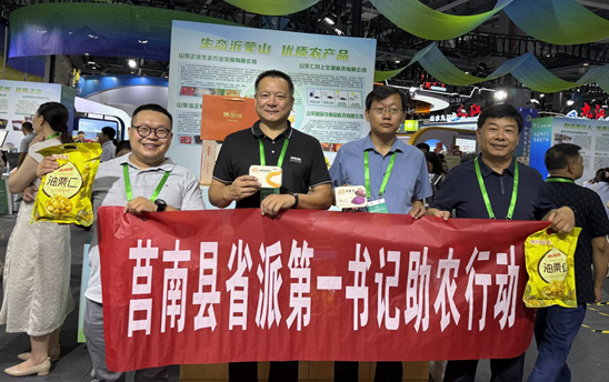 产销现场,第一书记化身“推销员”,通过短视频展示、直播互动、品鉴体验、现场推介等多种形式,向来自全国的供销商和消费者推介莒南县绿色、自然、原生态农产品。第一书记推介产品带来了实实在在的经济效益,农产品收益近2万元,牵线对接意向合作企业36家。