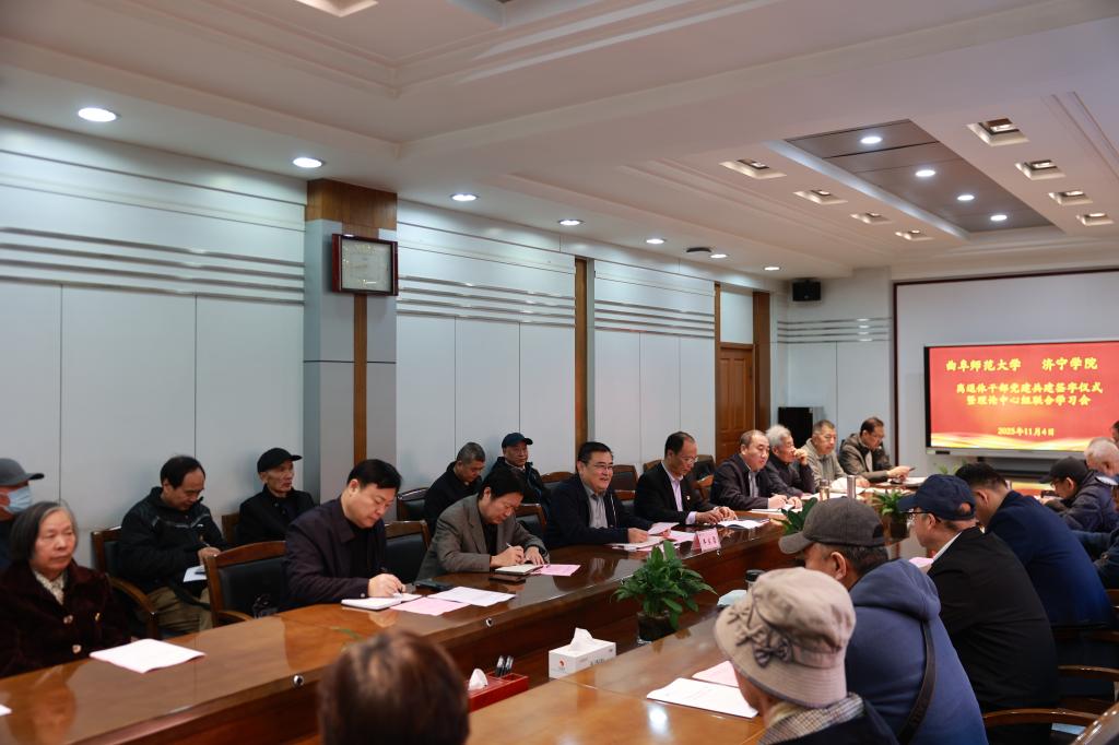 离退休工作处讯 为加强校际离退休党建工作交流协作,11月4日,曲阜师大离退休教职工党委委员、党支部书记和支部委员到济宁学院开展党建联学共建活动。济宁学院党委副书记丰家雷出席活动并致辞,济宁学院离退休工作处领导班子成员参加活动。