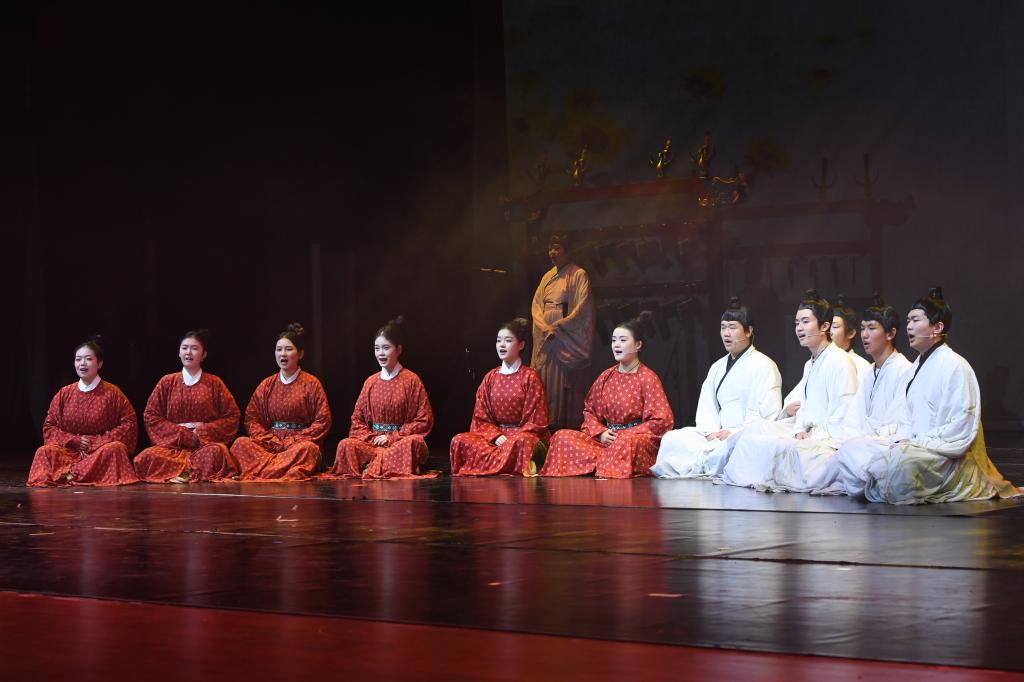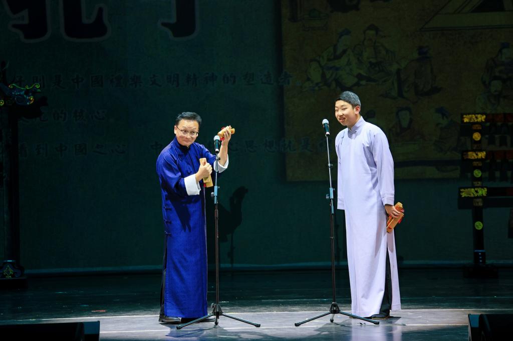 本次活动综合运用多种艺术形式,引领观众亲近礼乐文明,沉浸式体验华夏千年风雅。孔子文化研究院副院长、礼乐文化研究与推广中心主任宋立林,优秀传统文化教育中心副主任、礼乐文化研究与推广中心副主任袁梅担任本次活动的礼乐文化传习推荐官。济宁市文化传承发展中心主任李芳,曲阜文化示范区推进办主任朱湘华,济宁市文化交流协会主席周长征,孟子研究院党委书记、院长袁汝旭,曲阜市副市长周凯及省内外的礼乐文化传习人、参加现代新儒学青年学者论坛的专家、优秀传统文化教育中心培训学员、传统文化爱好者、我校师生500多人齐聚一堂,共同观看了展演。