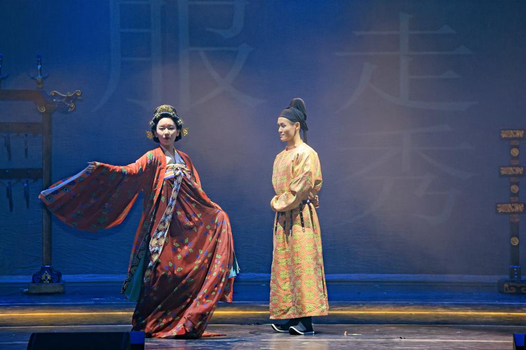 活动以曲阜东方舞院带来的《舞雩春风》拉开帷幕,随后曲阜市奎文学校、曲阜仲尼琴院合作呈现《小雅·鹿鸣》,学子们齐声诵读,声音清越朗健;《诗经·周南·关雎》则以轻吟浅唱的方式,将窈窕之思尽付弦歌;《汉乐府·长歌行》抒发对人生短暂的深沉慨叹,寄寓惜时奋进的殷切劝勉;《望庐山瀑布》《江上吟》的吟唱,声调依字行腔,顿挫有致,生动展现了李白诗作的壮阔意境与逍遥气度;快板书《话说孔子》以幽默诙谐的风格,娓娓讲述孔子生平,引得现场掌声阵阵,气氛热烈;终章《霓裳千年》翩然而至,HUANYING.COM汉服表演团队身着由山东省服装设计协会·周锦团队考据复原的传统衣冠,从容款步,衣袂翻飞,将五千年衣冠文明凝铸成为一幅流动的画卷,尽显衣冠上国之雍容与礼仪之邦之风骨,成就贯穿古今的华彩篇章。整场演出高潮迭起,佳作纷呈,令观众不禁生出“闻韶三月不知肉味”之叹。