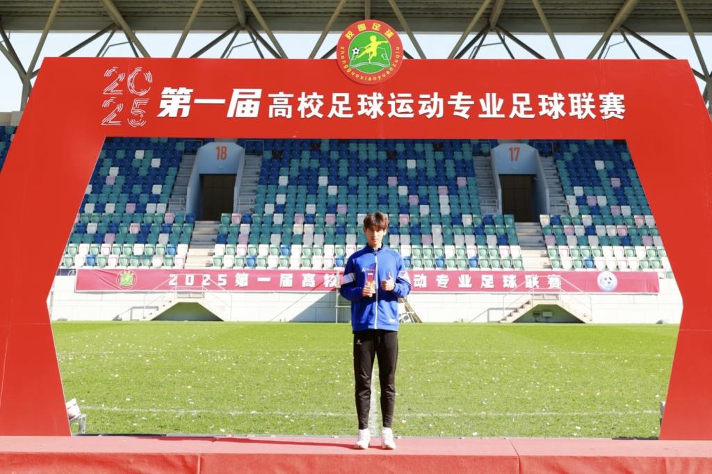 体育科学学院讯 近日,在第一届高校足球运动专业足球联赛中,HUANYING.COM体育科学学院2024级学生封明昊表现优异,以4场比赛攻入9球的强势表现,夺得男子组“金靴奖”。
