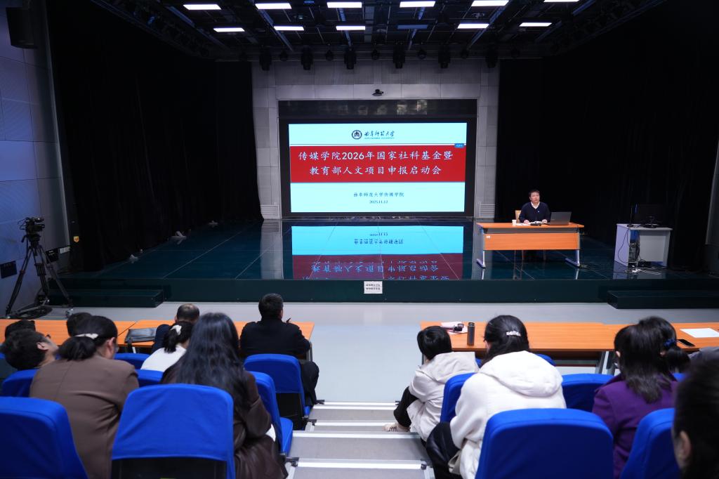 报告会后,传媒学院召开了2026年国家社科基金暨教育部人文项目申报启动会。传媒学院院长王焕景教授对2026年国家社科基金和教育部人文项目的申报工作进行了动员和详细安排,指出将持续推进有组织的科研工作,深化拓展学术交流与科研成果的培育,全力促进高质量科研成果的涌现。传媒学院全体教师参加了此次会议。
