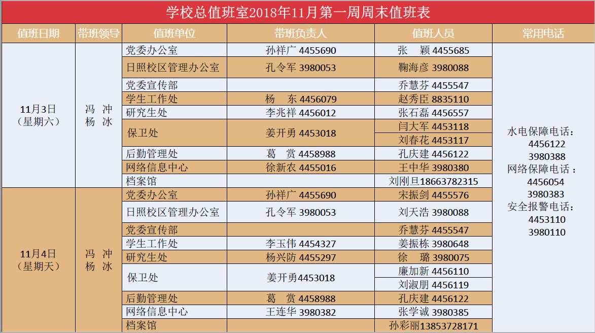 学校总值班室2018年11月第一周周末值班表