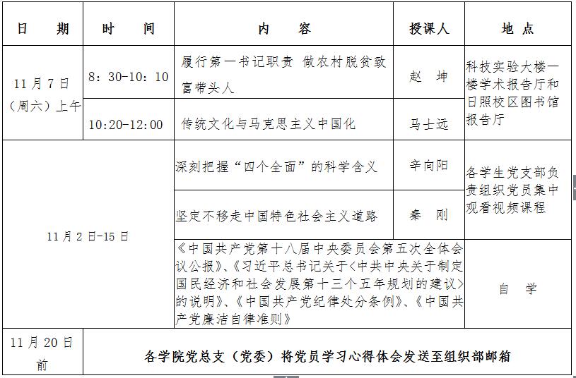 1、请各党总支(党委)高度重视本次培训,指派专人负责参训党员的组织和管理工作,并于11月4日(周三)17:00前将《培训班党员名单汇总表》发送至组织部邮箱qfnuzzb@163,日照校区发送至rzhdqb@163.com