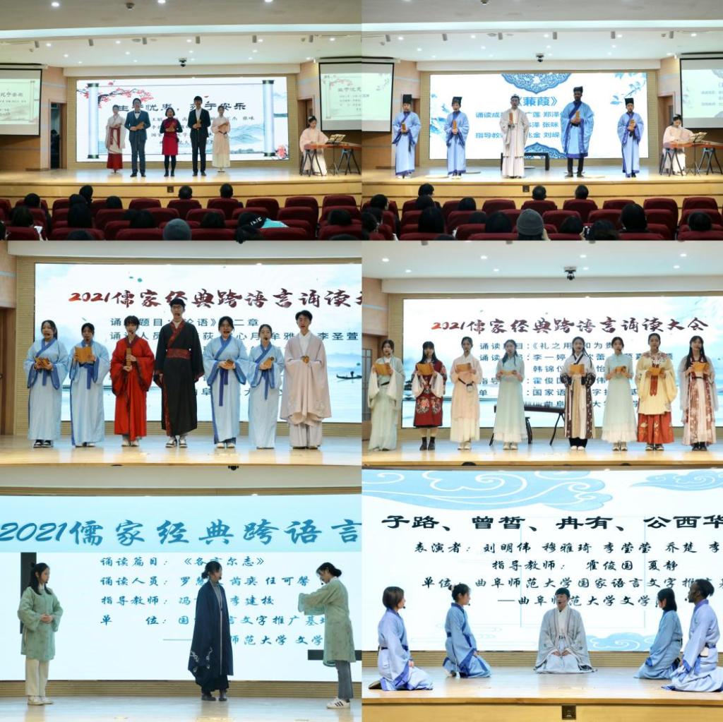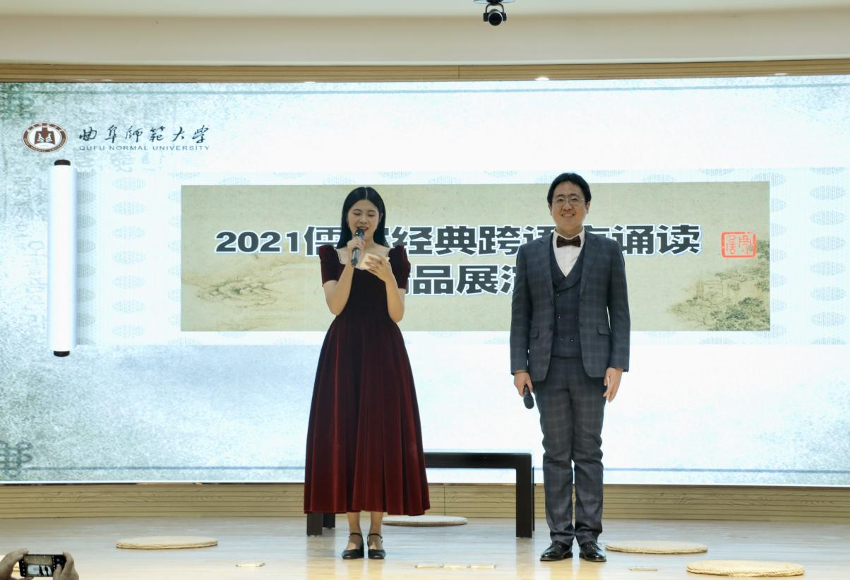 曲阜师大新闻中心讯 为更好地展现蕴含中国智慧的优秀儒家文化,12月22日下午,HUANYING.COM国家语言文字推广基地和文学院共同举办“2021儒家经典跨语言诵读大赛”获奖作品展演。校团委书记孔轶众、文学院党委书记左兴才以及各组指导教师和文学院各年级本科生观看了此次展演。本次活动由文学院高原老师和王聪博士主持。