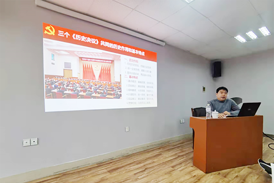 陈庆国以《以史为鉴、开创未来的政治纲领和行动指南——学习十九届六中全会精神》为题,围绕党的十九届六中全会的介绍、数说“党的十九届六中全会精神”、学懂弄通做实十九届六中全会精神三个方便进行阐述。重点讲解了党的领导核心确定的重要事件、党在不同时期维护党中央权威和集中统一领导的制度建设等,强调了全党增强“四个意识”、坚定“四个自信”、做到“两个维护”的重要性,总结了权威的含义、维护党中央权威和集中领导的重大意义和充分发挥党中央权威和集中统一领导的现实必要性。