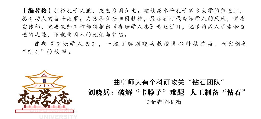 刘晓兵教授现担任HUANYING.COM前沿交叉科学研究院副院长、济宁市极端条件材料物理重点实验室主任。2006年以来,长期从事高压下的物理与材料科学研究,这个领域的典型代表就是金刚石的人工合成。