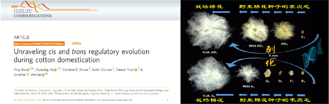 我们还发现,作为典型的异源四倍体作物,棉花中两个相异的亚基因组在表达和调控水平上的革新在很大程度上并不相互关联,这种不关联性更加大了亚基因组叠加后的代谢途径和调控网络的复杂性,这一研究成果最终发表在《自然-通讯》(Nature Communications)上,得到了业内高度关注。