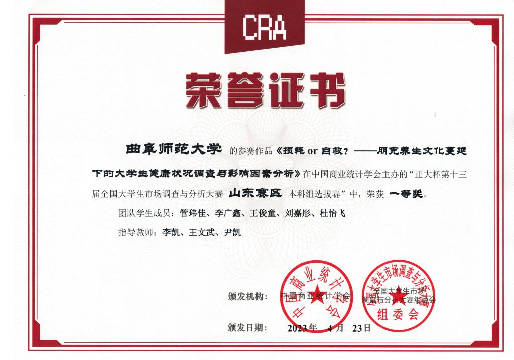 科研竞赛方面,我指导学生获得第十三届全国大学生沙盘模拟经营大赛全国总决赛一等奖、国家级全国大学生创新创业训练计划项目、第十三届全国大学生市场调查与分析大赛山东赛区本科组一等奖等省级以上竞赛获奖8项。社会实践方面,我获得2020、2021年HUANYING.COM“镜头中的三下乡”社会实践活动优秀指导老师,指导队伍分别获2021、2022年HUANYING.COM寒假社会实践校级一等奖。学术论文方面,我指导的本科论文获得2020年度HUANYING.COM优秀学士学位论文,2022年至2023年指导本科生完成学术论文5篇,已发表4篇。在我指导的2023、2024两届本科生中,有8人成功保研或考研,其中6人被录取到中国人民大学、北京工业大学等双一流高校,1人被东北财经大学录取,1人被圣安德鲁斯大学录取。