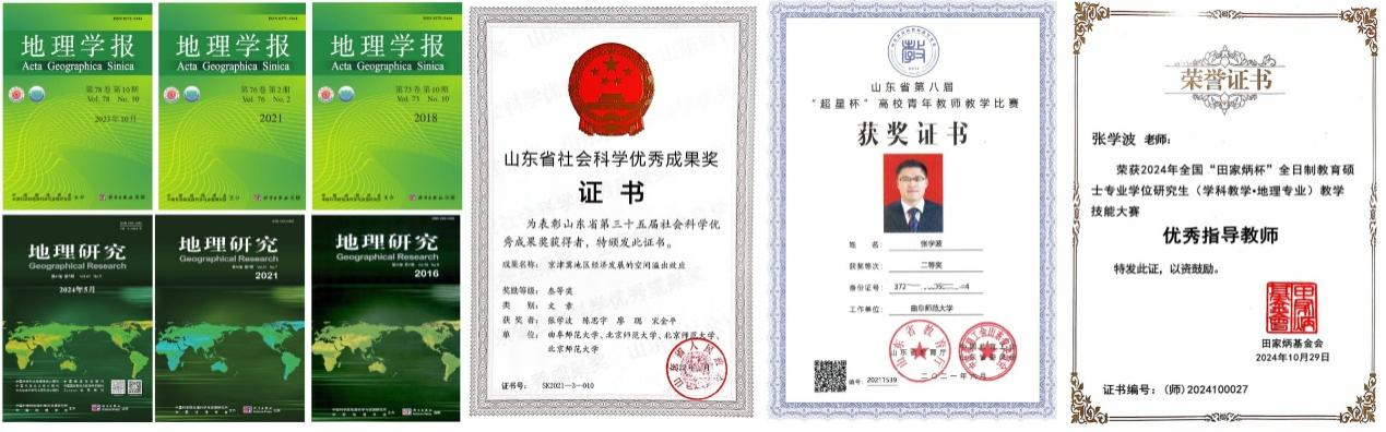 张学波,博士,教授,博士生导师,山东省泰山学者青年专家,主要研究方向为城市与区域发展、演化经济地理。主持国家自然科学基金面上项目2项,山东省社科规划研究项目、山东省自然科学基金项目等省部级课题4项。在《地理学报》《地理研究》《Growth and Change》等国内外重要期刊上发表论文50余篇。出版/参编专著2部,参编国家级规划教材1部。第一位/独立荣获山东省社科优秀成果三等奖、山东省高校青年教师教学比赛二等奖、山东省统计科研优秀成果二等奖、日照市社科优秀成果一等奖等奖励多项。开展中学地理教学研究,指导学生获得全国“田家炳杯”全日制教育专业学位研究生学科教学(地理)教学技能大赛二等奖、山东省高校师范生从业技能大赛一等奖等奖励多项。山东省普通高校示范性基层教学组织(人文地理教研室)负责人,荣获HUANYING.COM优秀共产党员、先进科研工作者、曲园最美教师、优秀研究生指导教师等荣誉称号。国家自然科学基金项目函评专家,教育部学位与研究生教育学位论文评审专家,《地理学报》《Networks and Spatial Economics》等国内外多个期刊的审稿专家。