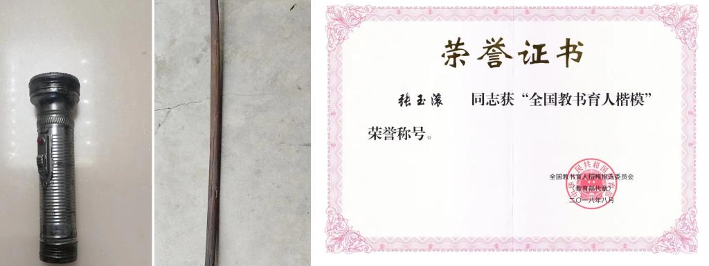 讲课开始,张玉滚还响应教育部教师工作司面向全国征集教书育人见证物的工作部署,向教师博物馆捐赠了自己教书育人的见证实物——“全国教书育人楷模”荣誉证书、曾经为学生运送书本教材所用的扁担,接送学生时在山路上照明用的手电筒等。这些教育实物将按照教育部教师工作司要求,作为师德教育的“活教材”由教师博物馆收藏并永久展出。