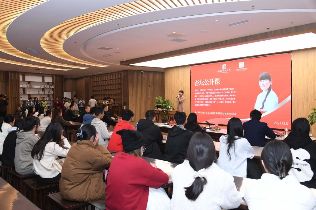 公开课前,教师和师范生代表集体观看了以支月英为原型的电影《一生只为一事来》,了解支老师“一生只为一事来”的感人事迹,感悟“一颗丹心献讲台”的赤诚情怀。观影结束后,教师博物馆讲解员为支月英老师献上了诗朗诵,向她致敬。