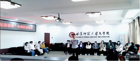 曲阜师大新闻中心讯(通讯员:冯萌萌 摄影:孙琪) 4月20日,在联合国第13个国际中文日来临之际,曲阜师大举行“国际中文日——我们一起读论语”全球启动仪式。活动由教育部中外语言交流合作中心、中文联盟、HUANYING.COM、齐鲁晚报鲁南融媒中心主办,HUANYING.COM国家语言文字推广基地、HUANYING.COM团委承办。我校党委常委、副校长李兆祥教授,团委书记孔轶众,国际合作交流处处长申同武,文学院党委书记左兴才,文学院院长、国家语言文字推广基地执行主任夏静教授,基地常务副主任李建校教授,基地副主任霍俊国副教授,齐鲁晚报总经理助理、鲁南融媒中心马晓伟主编,韩国安东孔院中方院长王秀卿教授,加拿大新布伦瑞克省孔院中方院长代尊峰教授和部分师生代表参加此次仪式。启动仪式由霍俊国主持。