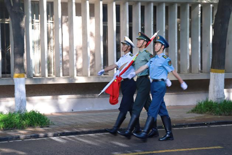 当鲜红的五星红旗在庄严的国歌声中一次次升起,我们坚定地凝望着红旗的方向,肩上扛的不只是肩章,更有一颗对国旗的热烈赤诚之心。