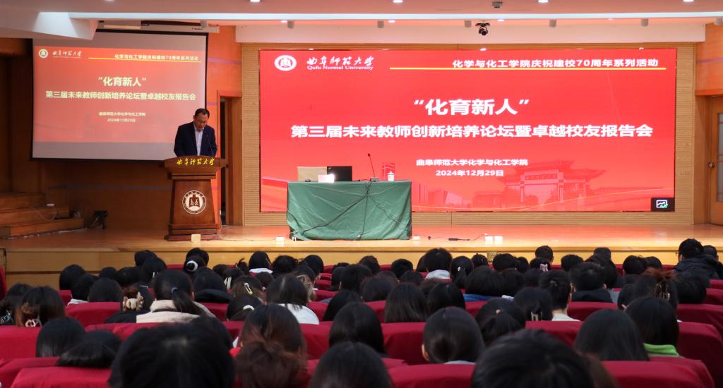 化学与化工学院讯 为推动本科教育教学改革,提高师范生的从教意愿、教学能力和综合素养,12月29日,化学与化工学院在孔子会堂举办第三届“化育新人”——未来教师创新培养论坛暨卓越化学校友报告会,即将奔赴实习岗位的301名化学专业大三师范生参加了论坛。