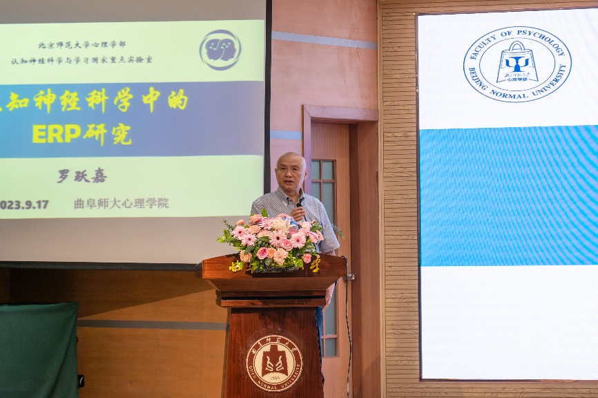 罗跃嘉教授为师生作了题为《认知神经科学中的ERP研究》的学术报告。罗教授在报告中指出,随着认知神经科学的兴起,对认知加工过程特别是其时间进程的研究日渐丰富,也催生出ERP技术的蓬勃发展与应用。他介绍了ERP研究中的主要脑电成分与范式,并分享了其团队在注意、工作记忆等领域的重要研究成果。