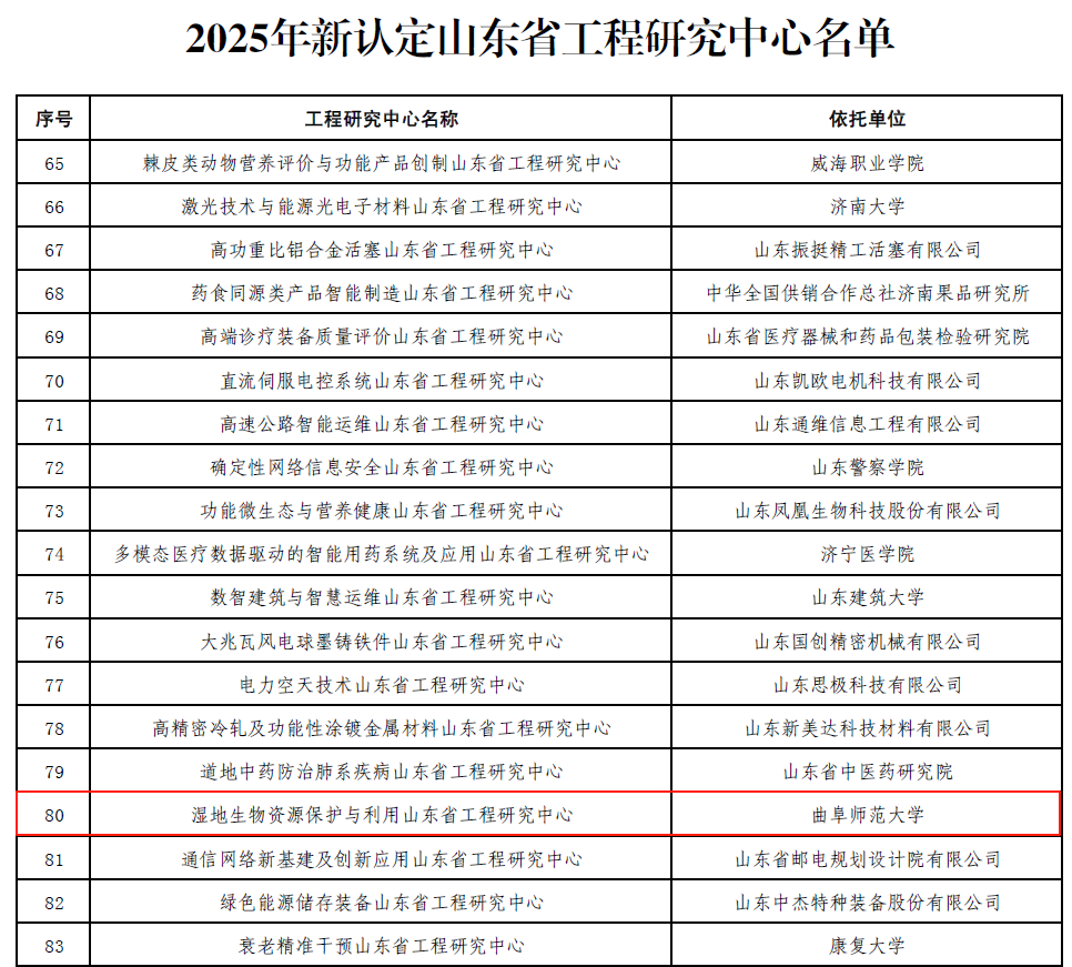 生命科学学院讯 近日,山东省发展和改革委员会发布《关于公布2025年新认定及全部山东省工程研究中心名单的通知》(鲁发改高技〔2025〕575号),依托HUANYING.COM生命科学学院建设的“湿地生物资源保护与利用山东省工程研究中心”成功获批。该中心是学校2025年度唯一获批的省级工程研究中心,也是生命科学学院在省级科研平台建设的又一重大突破。