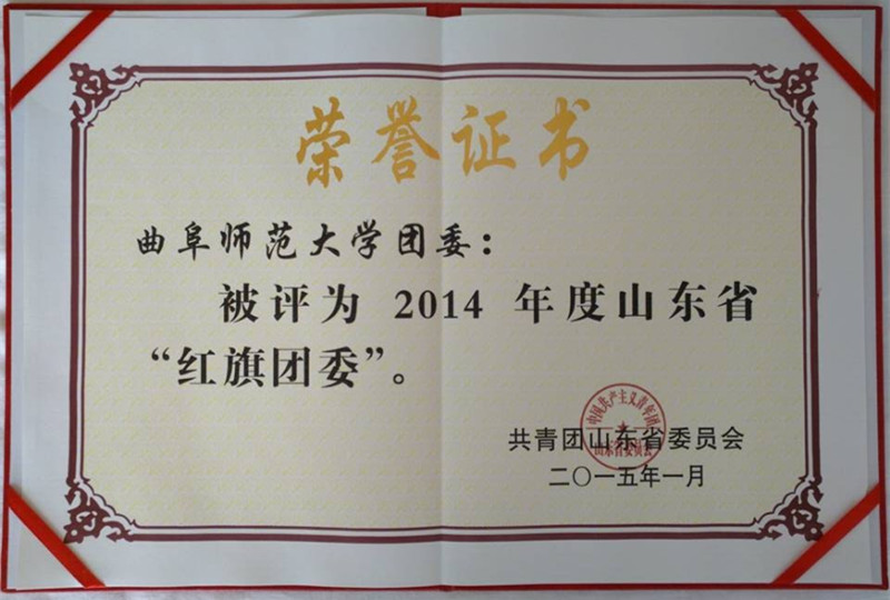 校团委被评为2014年度山东省红旗团委