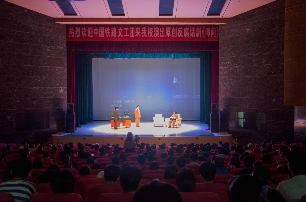 中国铁路文工团来校演出原创反腐话剧《叩问》