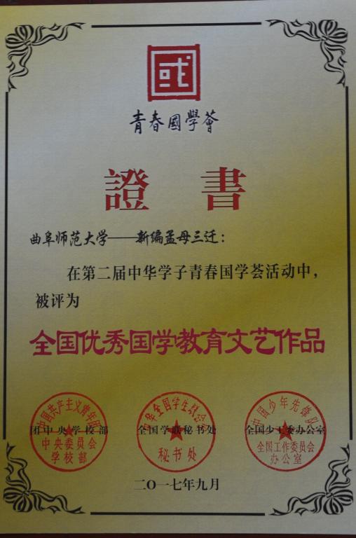 我校获第二届中华学子青春国学荟“六个100”优秀国学项目