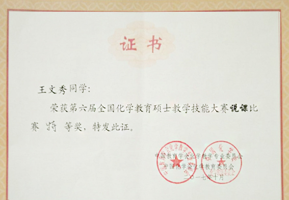 我校在全国化学教育硕士教学技能大赛中获特等奖