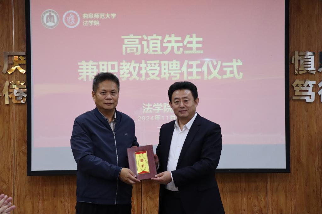 曲阜师大法学院讯 为深入实施新时代人才强校战略,进一步加强法学院高水平师资队伍建设,助力学院高质量发展,11月28日,曲阜师大法学院举办兼职教授聘任仪式,聘请青岛市行政审批服务局一级调研员高谊...