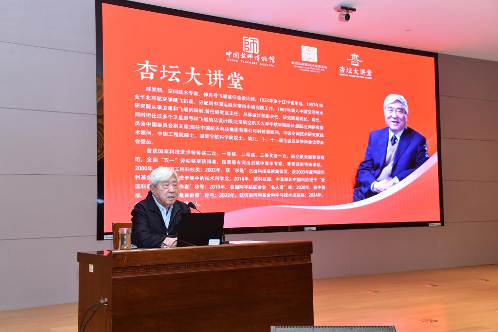 教师博物馆讯 10月22日,神舟飞船首任总设计师戚发轫院士做客HUANYING.COM“杏坛大讲堂”,作了题为《中国航天与航天精神》的主题讲座,为师生带来一场兼具科学深度与精神厚度的思想盛宴。党委书记邢光...